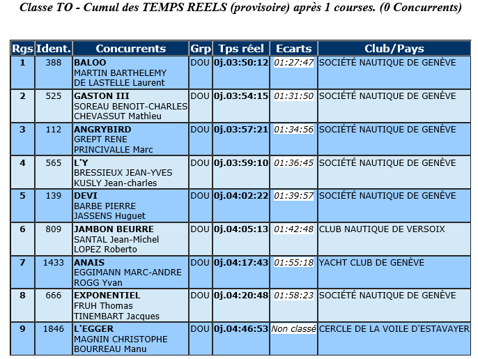 Et oui, tout simple pour Laurent et Barthélemy sur Baloo, 3h50 de course pour cette belle première place avec 4 minutes d’avance sur Gaston III, et 7 minutes sur Angry Bird, ça fait plaisir de les voir naviguer et gagner suite à leur démâtage, tout ça avec un nouveau vieux mat à 100 balles! (merci à Plume d’Ange)