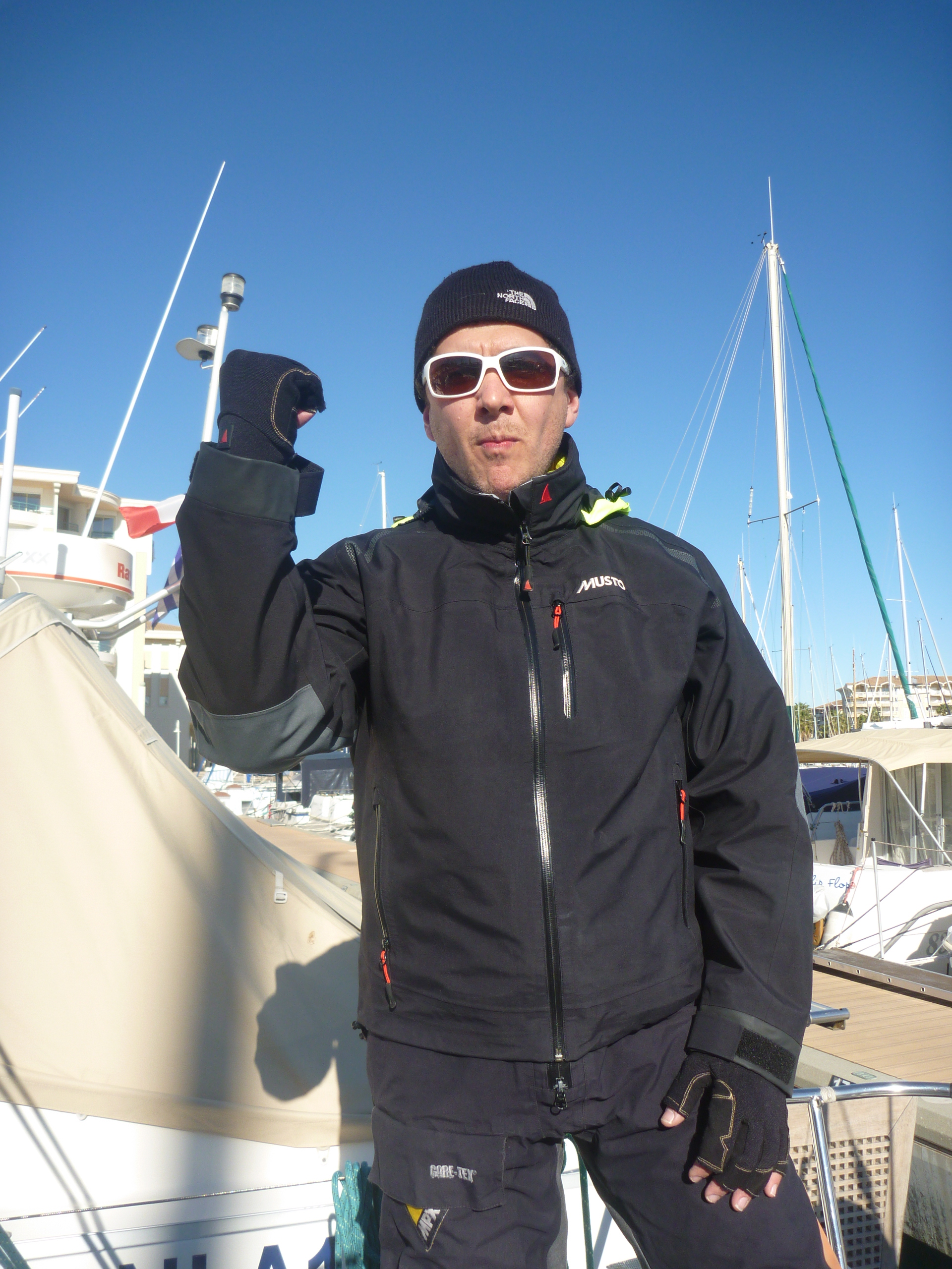 Et c’est bien connu pour les coureurs des 900 nautiques, c’est aux extrémités que c’est corsé, notamment pour équipage d’Obsession qui est atteint en grande partie par le mal de mer, une petite photo de notre sportif pour illustrer le décor!!!