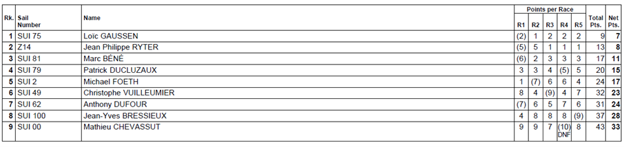 Deux semaines plus tard, du 24 au 25 mai, se déroulait le critérium de Founex. Eole fut généreux, car il permit à nos régatiers de réaliser 8 manches sur les deux jours. Une fois encore, Loïc Gaussen sur Incisif, Jean-Philippe Ryter sur Altatang et Marc Béné sur Epsilon se sont imposés aux trois premières places.