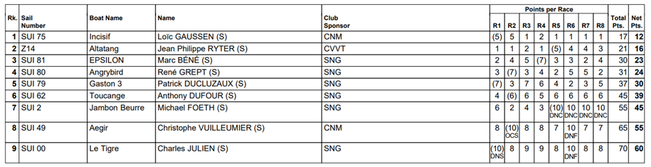 Les prochaines manifestations de la classe sont prévues du 13 au 14 septembre, pour le championnat de Lausanne, et du 10 au 12 octobre pour les Voiles d’Yvoire.