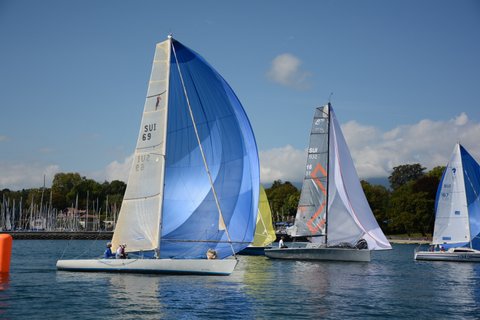 La double de Versoix 2015 sur Gaston III (Ben & Mat), Angrybird à l’attaque sous spi noir, loooooiiiinnnn derrière!!!